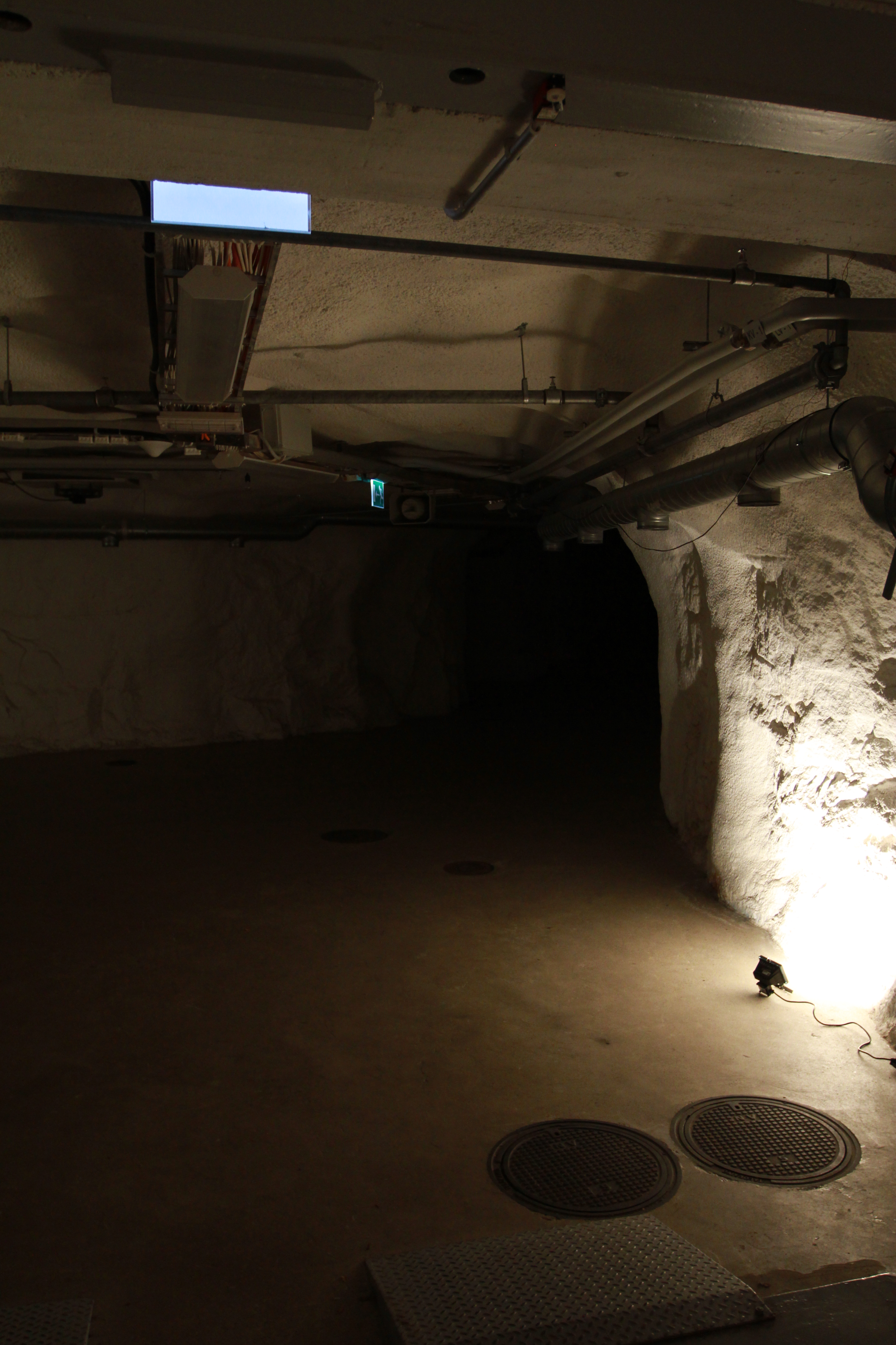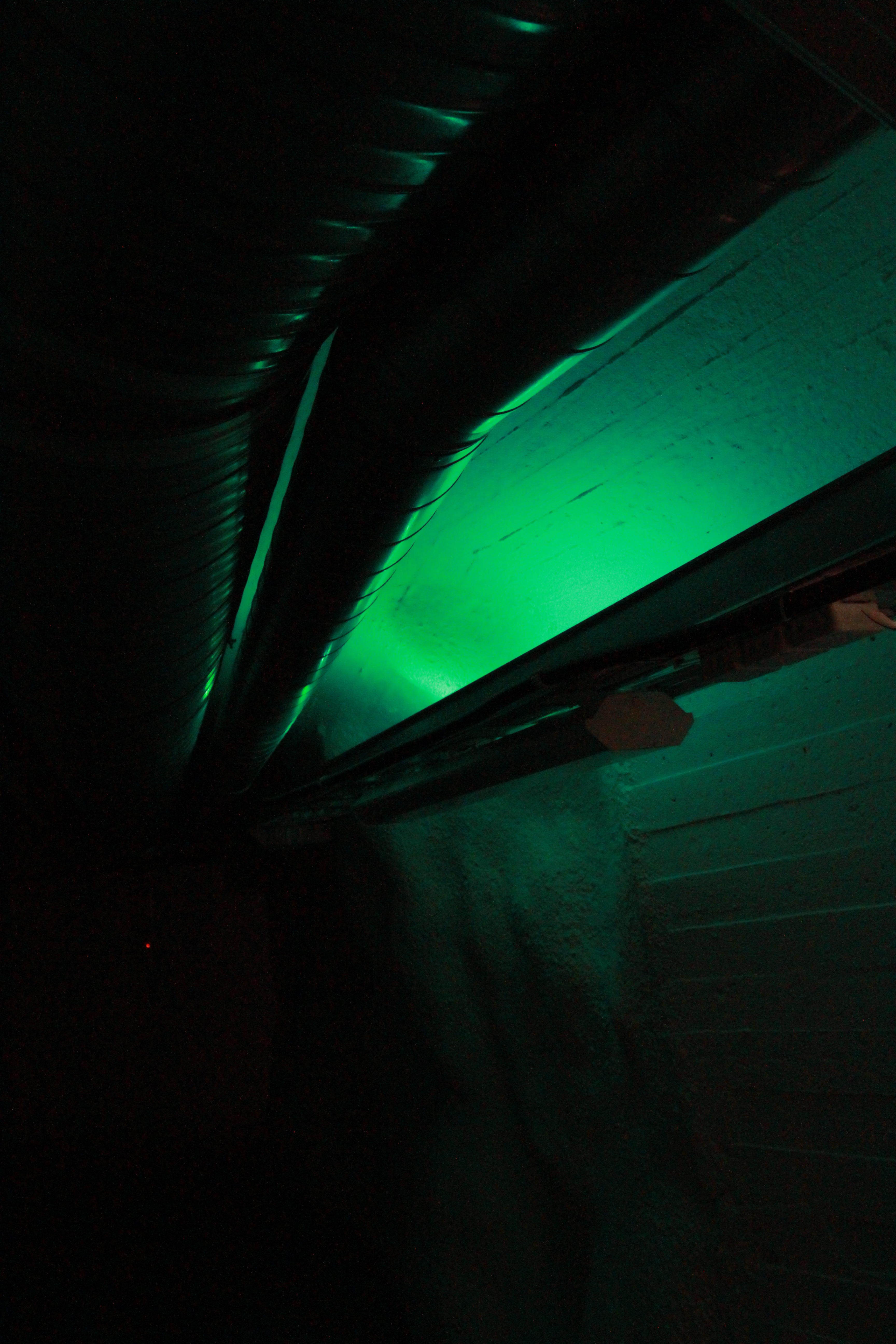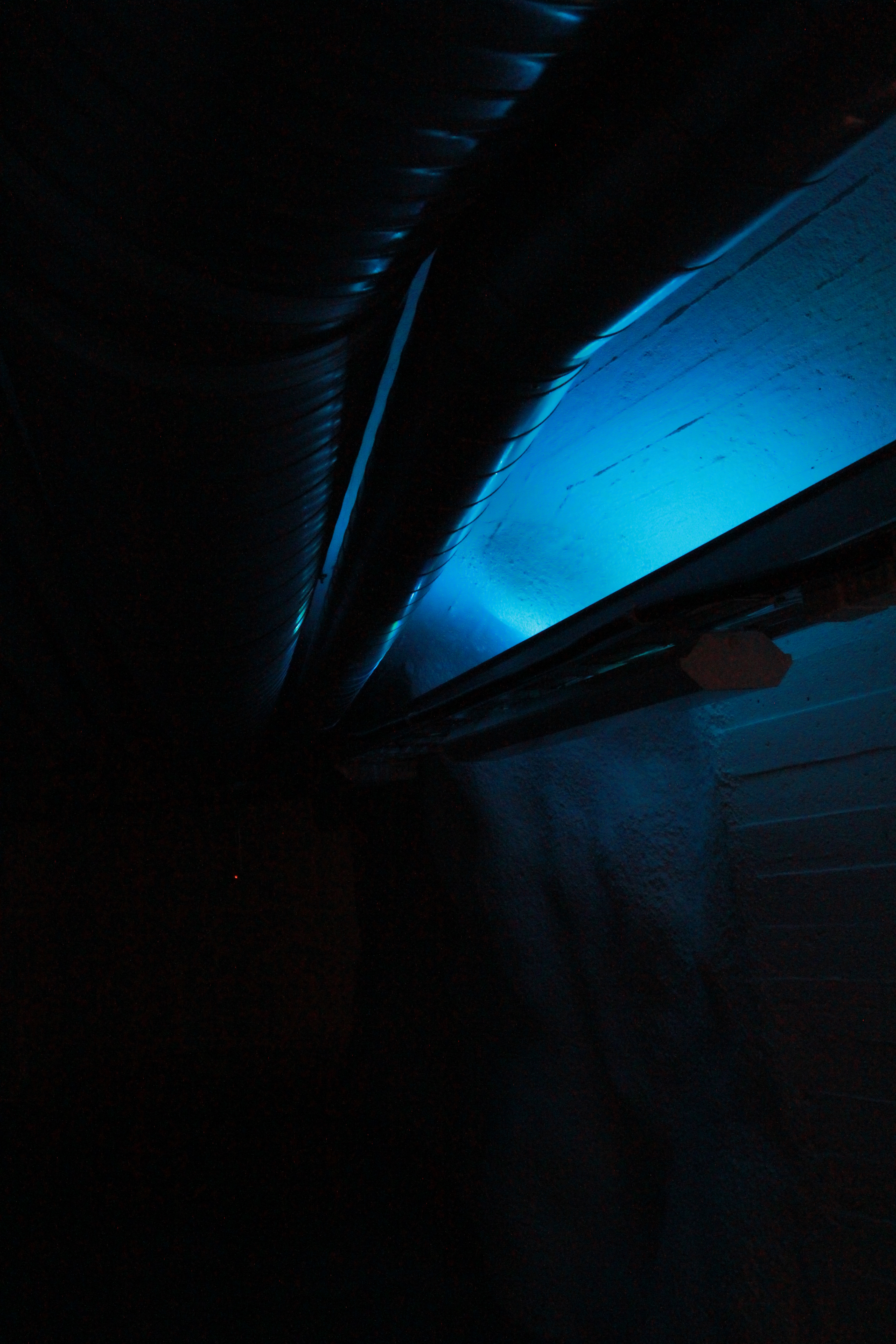 The composition has been created with the architecture and the sound of the ventilation system of Vapaan Taiteen Tila in mind: the idea has been to use the existing static noise/tone from the large ventilation pipes as the central sonic element and build a slowly evolving musical landscape or “frame” around it. The music is diffused into the space by using some of the pipes as “invisible” speakers, via audio transducers hidden behind the pipes. The slowly undulating character of the composition reflects the architectural design of the two cavernous corridors the music is playing in; it is accompanied by the reflection of hidden, slowly changing coloured LED lights in the second corridor, while the first is lit by warm spotlights illuminating the walls. The overall character of the work is subtle and almost ephemeral: the aim has been to transform the auditory and visual experience of the space into more sensuous and contemplative one, inviting the audience to slow down and allow more attention to the sounds and structures around them.