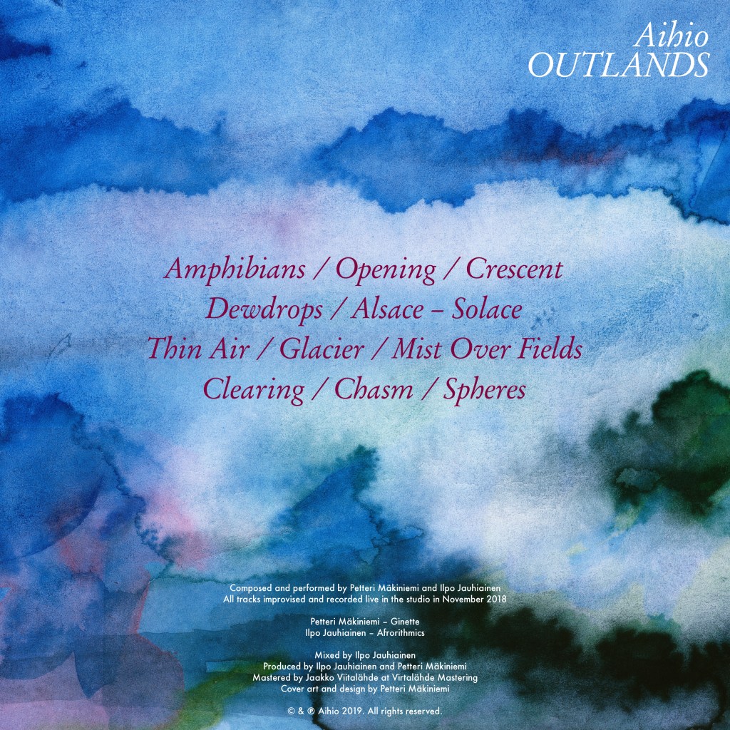 ‘Outlands’ is a debut album by Aihio, a new Finnish duo formed by musician, composer and instrument maker Petteri Mäkiniemi and me.