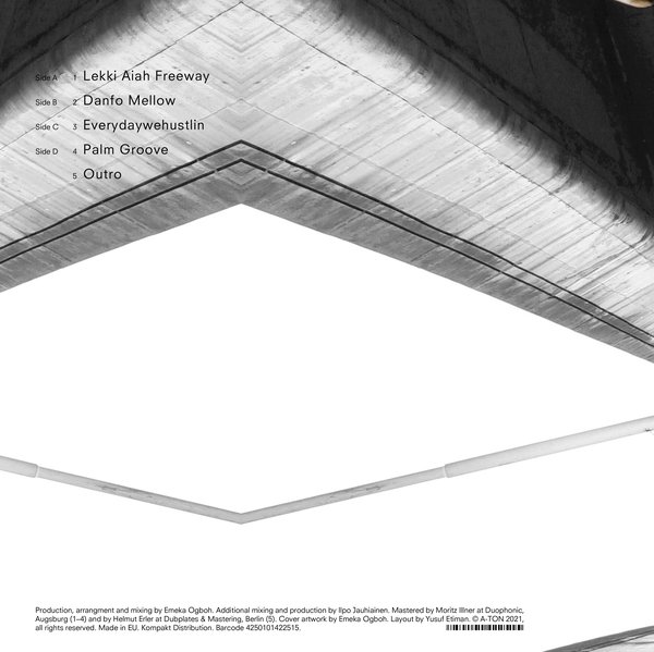 Production, arrangement and mixing by Emeka Ogboh. Additional mixing and production by Ilpo Jauhiainen. Mastered by Moritz Illner at Duophonic, Augsburg (1-4) and by Helmut Erler at Dubplates & Mastering, Berlin (5). Cover artwork by Emeka Ogboh. Layout by Yusuf Etiman. © A-TON 2021